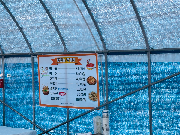 맛있는 먹거리: 따뜻한 떡국, 김치전, 국수, 무전, 어묵탕, 떡볶이 (홈페이지와 조금 다를 수 있어요~)