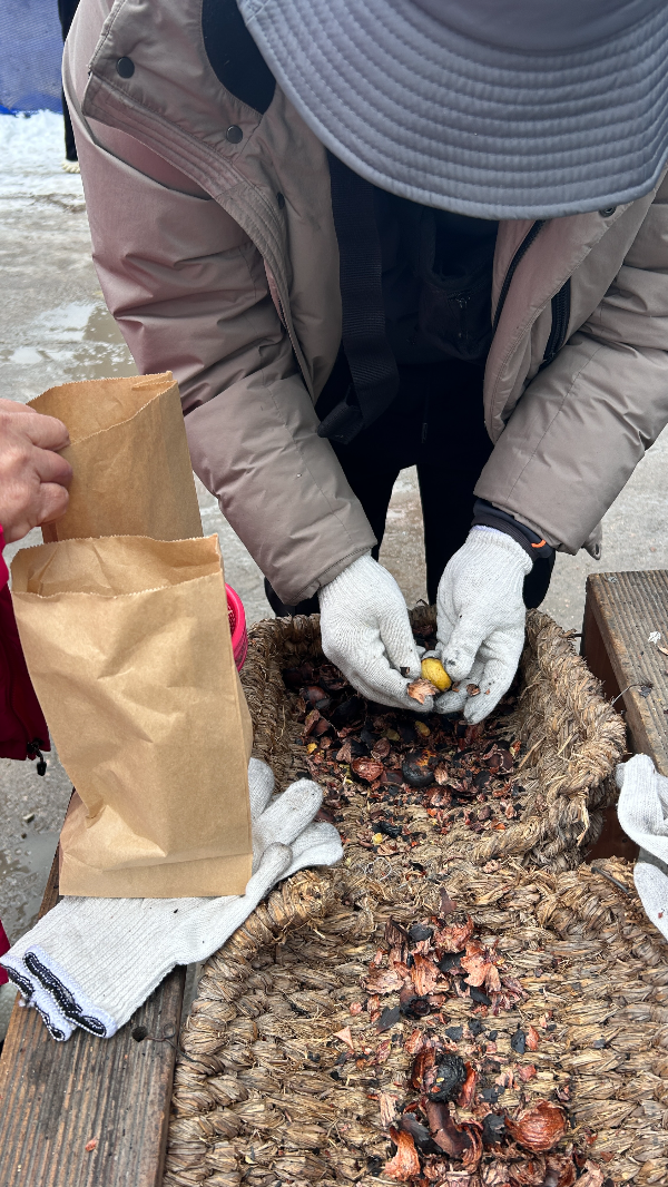 아이들이 신나게 놀 때 저희는 따뜻한 군밤도 구워먹었는데요, 달달한 군밤 맛이 추운 날씨에 딱이었답니다!