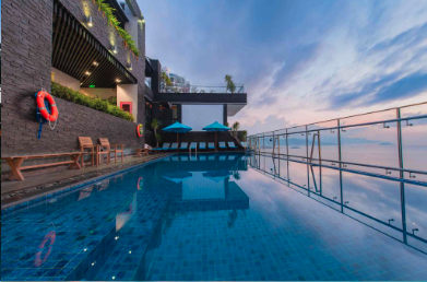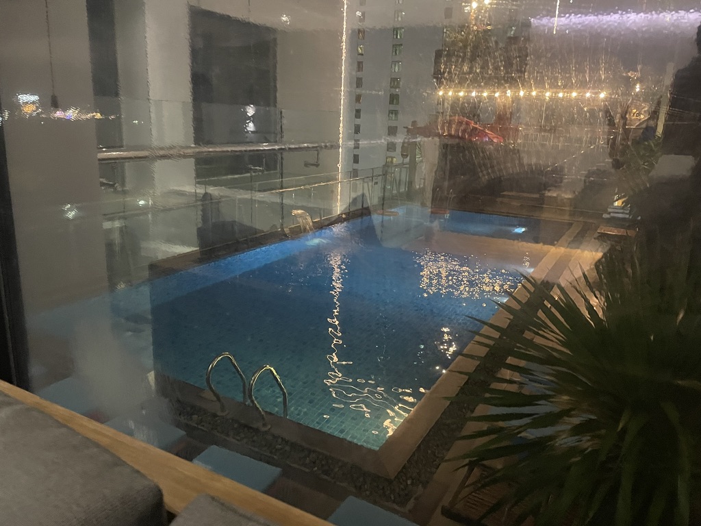 물 좋아하는 초등학생 4명이 있어서의 메이플 호텔 앤 아파트의 SKY VILLA(4베드룸)의 최대 장점은 수영장입니다. 호텔의 수영장은 저희가 묵은 룸과 같은 층에 있으며 문을 열고 나가면 바로 이용이 가능합니다. 우기이기도 하고 저녁이 되면 수영을 하기에는 조금 추웠는데 아이들은 추위따위에 굴하지 않고 정말 재미있게 수영을 하며 즐길 수 있었습니다. 또한, 수영장을 이용하며 다른 투숙객들을 보지 못했기에 마치 풀빌라에서 노는 듯한 착각도 했었습니다.