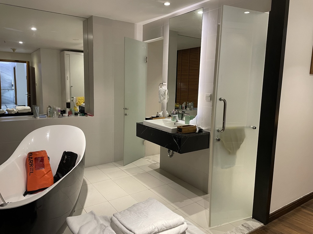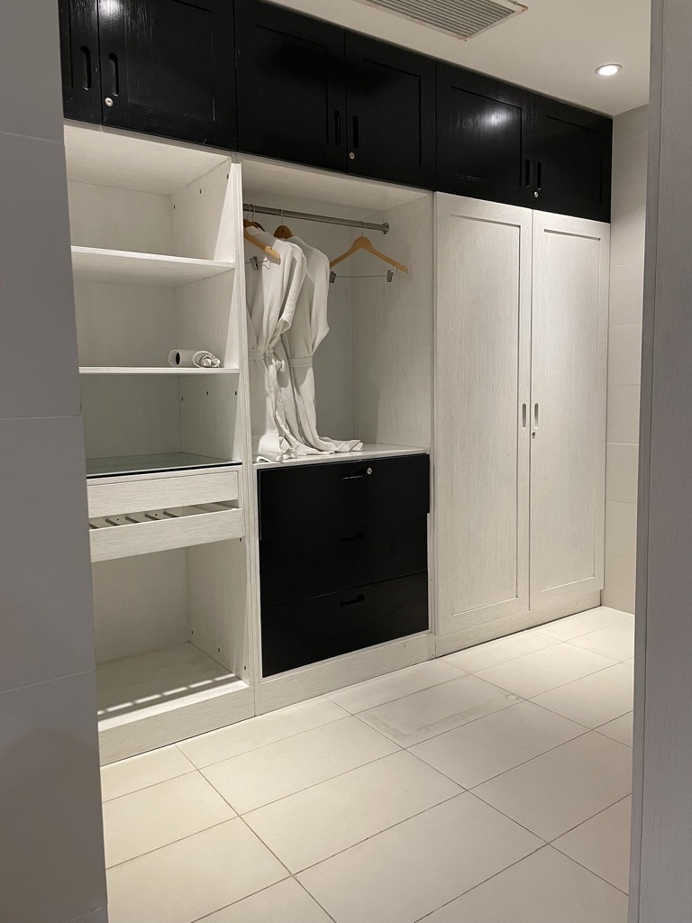 마스터방이 두개로 구성되어 있다는 느낌이였습니다. 1번째 마스터룸에서는 나트랑에서 유명한 루프탑바를 직관할 수 있는 위치에 있었습니다. 넗은 화장실과 샤워실, 드레스룸이 따로 구성되어 있습니다. 방크기가 정말 압도적이였습니다. 40평대 아파트 거실정도의 크기?