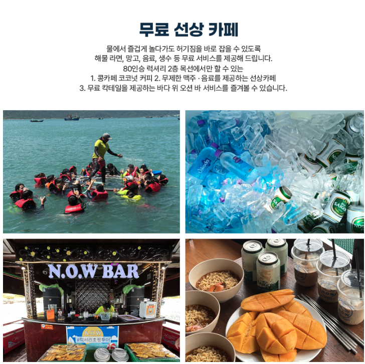제가 사진 찍는 솜씨가 좀 서툴러서, 제 사진들만으로는 이 투어의 멋진 모습을 충분히 전달하기 어려울 것 같아요. 그래서 베트남 나트랑 도깨비 럭셔리 호핑투어에 대해 더 자세히 알려드리기 위해, 제가 찾아본 몇몇 사진들을 여러분과 공유하려고 합니다. 여행을 계획하시는 분들께 이 정보가 작은 도움이라도 되었으면 좋겠어요. 이 호핑투어는 정말 잊지 못할 경험이 될 거예요. 여러분의 여행이 이 투어로 인해 더욱 특별해지길 바라요.