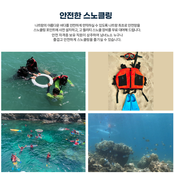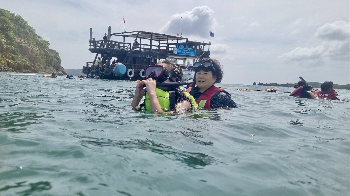 우리 아이들과 저는 스노클링 장비를 준비해 가져갔는데요, 장비를 가져오지 못한 부모님들도 배에서 대여해주는 스노클링 장비를 이용해서 즐거운 시간을 보낼 수 있었습니다.